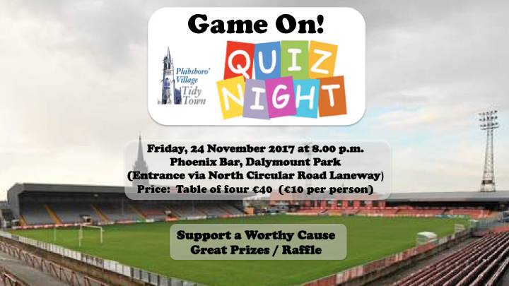 If you’re already missing Friday nights at Dalymount Park, you can go some way towards rectifying that this week by attending the Phibsboro’ Village Tidy Town table quiz.