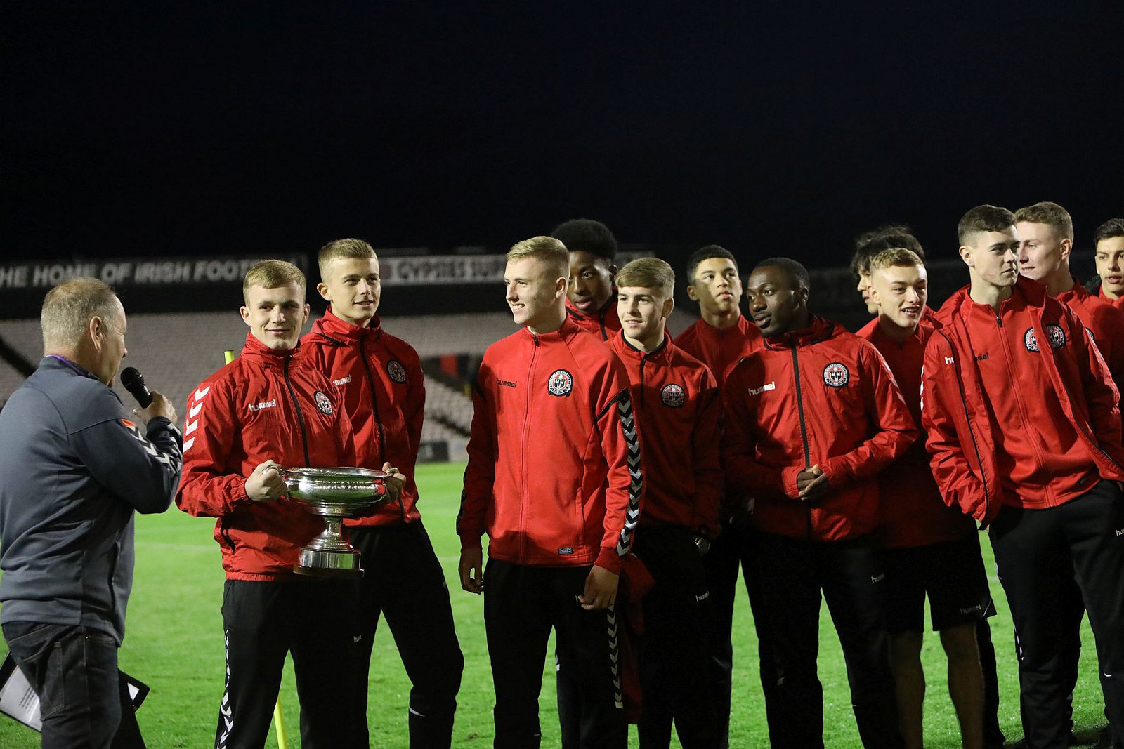 The U19s paraded their latest trophy pitchside at the half-time break during the first team’s game against Cork City on Friday and would once again be grateful of your support when they look to get the better of U19 Northern Division league leaders St Pat’s once more.