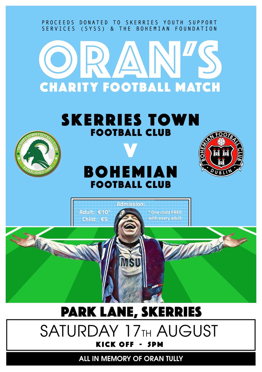 All proceeds to Skerries Youth Support Services and Bohemian Foundation.